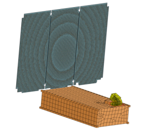 Работа посвящена сопоставлению результатов моделирования многолучевой гибридно-зеркальной антенны с расчетами, полученными в среде Ticra Grasp. Проведена количественная оценка точности моделирования. На геостационарных спутниках систем связи широко применяются крупногабаритные многолучевые гибридные зеркальные антенны (МГЗА) [1−3], к стабильности диаграмм направленности (ДН) которых предъявляются жесткие требования. Публикации [4-6] посвящены стабилизации характеристик антенны, подвергающейся эксплуатационным нагрузкам. В них МГЗА моделировалась в рамках первого приближения [7].